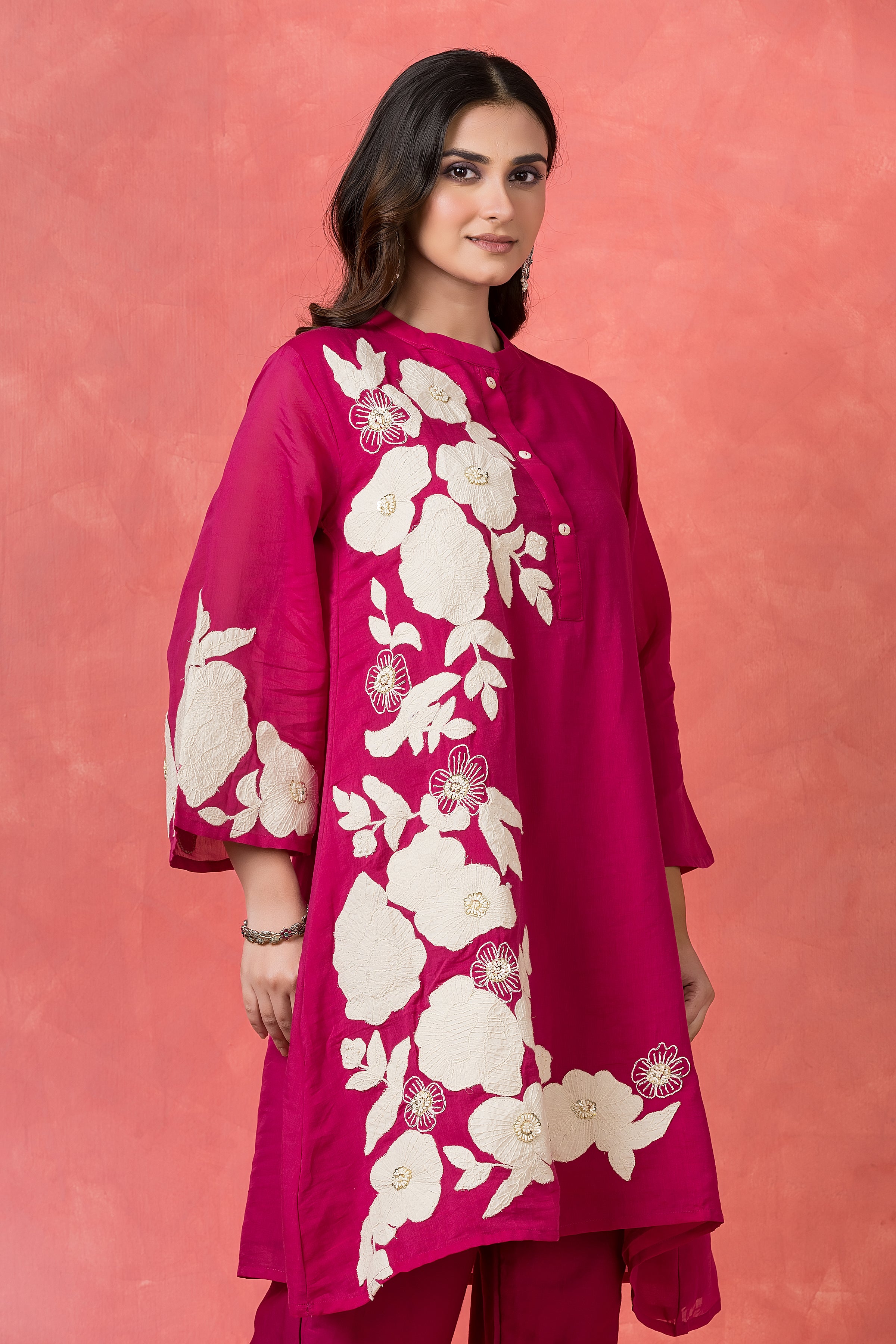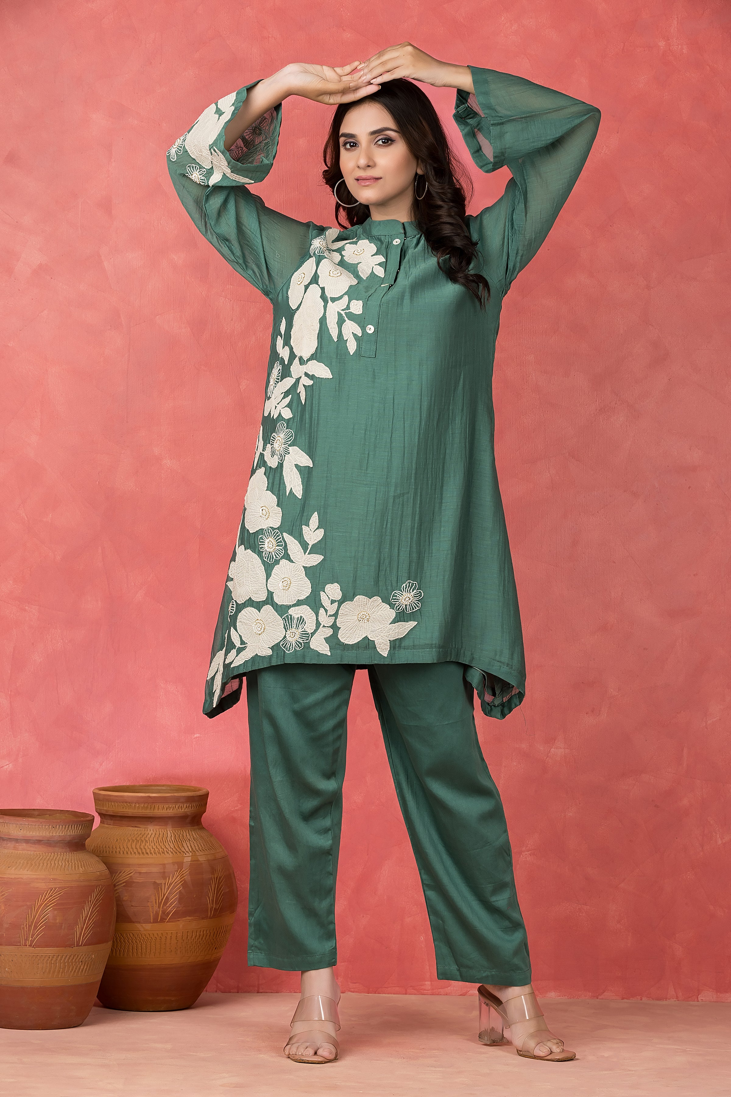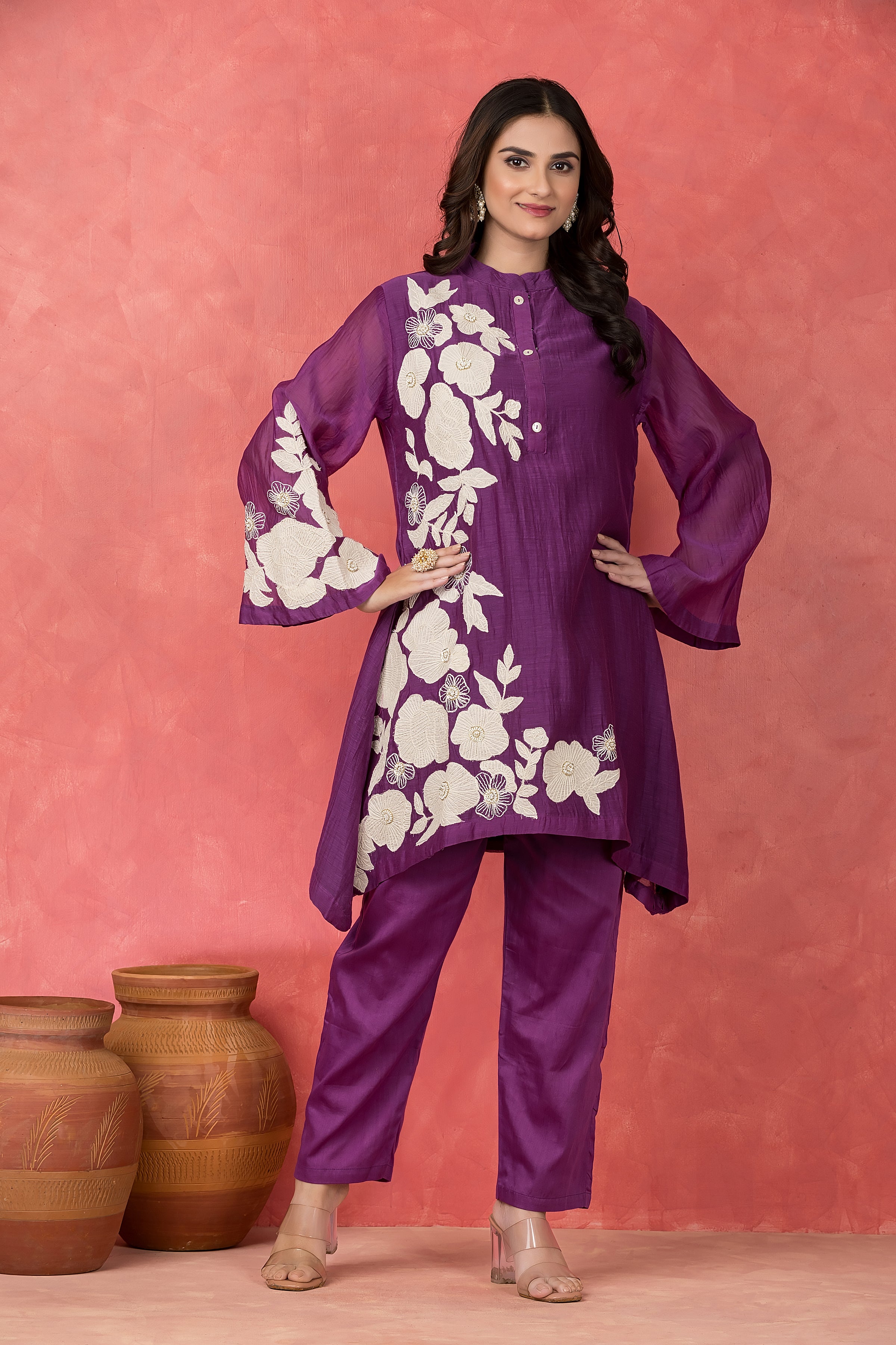 Mul Chanderi Applique Embroidered Co-ord set