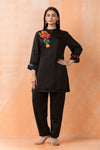 This sequence work co-ord set strive to break the cultural monotony with traditional silhouettes spruced up with modern and update styling. The slight touch of hand embroidery on collar and daaman gives this dress a different look. More so this casual wear has been especially curated to help you breeze through your busy days.